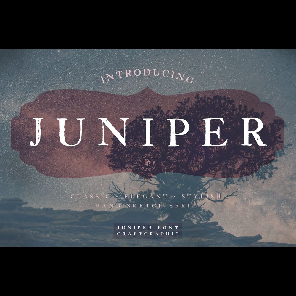 Juniper is a seasoned vintage serif typeface with worn, aged style. A classic vintage version of an early printed serif with all the imperfections of wear and tear. It brings authenticity from its imperfections to create a boho style